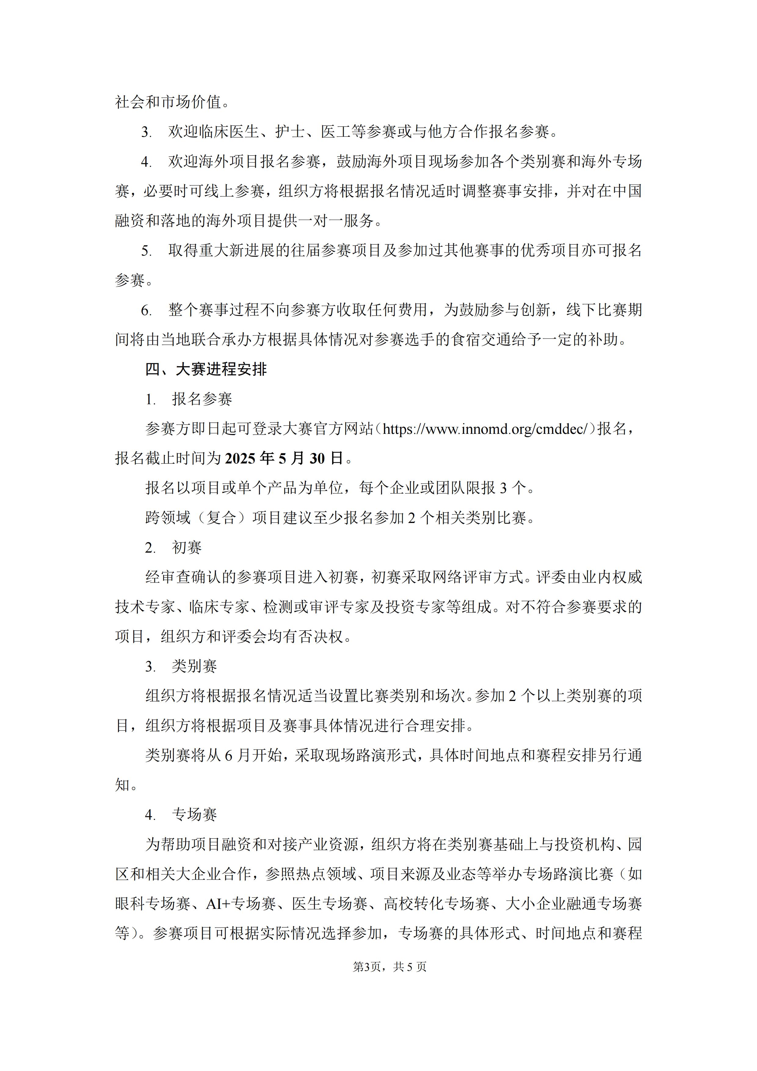 参赛方即日起可登录大赛官方网站(医疗器械创新网网://jd46.com/cmddec/)报名,报名截止时间为2025年5月30日。